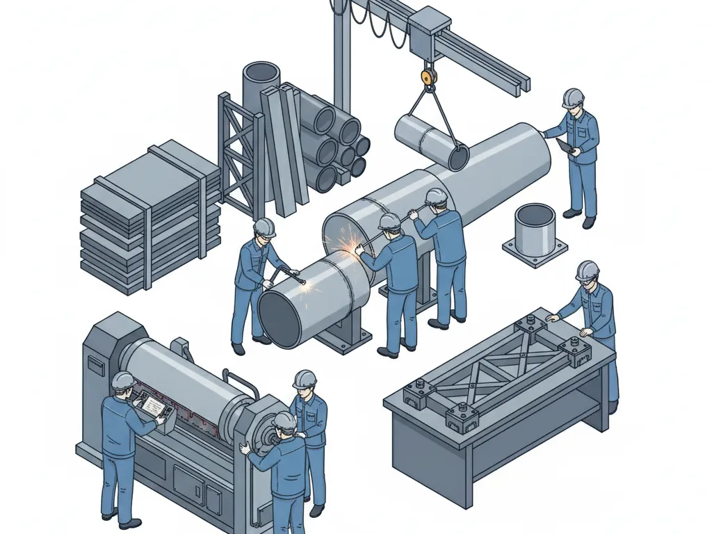 Каждая секция проходит контроль геометрии, сварных швов и защитных покрытий.