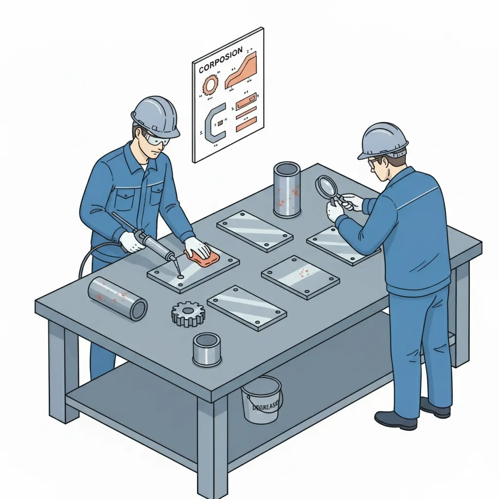 Подготавливаем детали: удаляем масла и загрязнения, оцениваем коррозию.