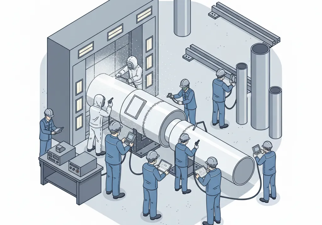 Каждый элемент проходит пескоструйную очистку, контроль размеров и многослойную окраску ЛКМ.