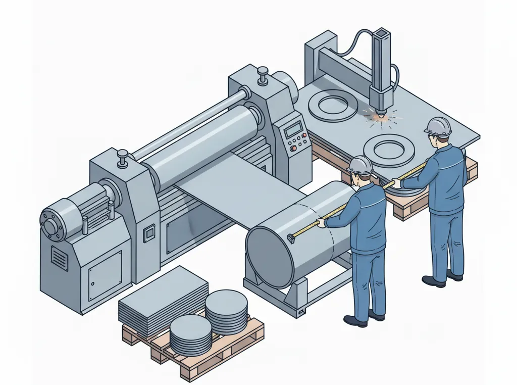 Вальцовка обечаек, днищ и образмеривание.