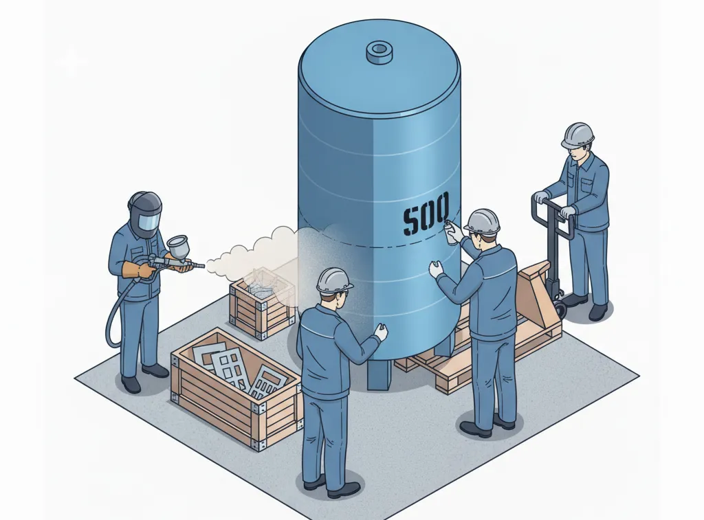 Пескоструй и многослойная окраска, маркировка и отгрузка.