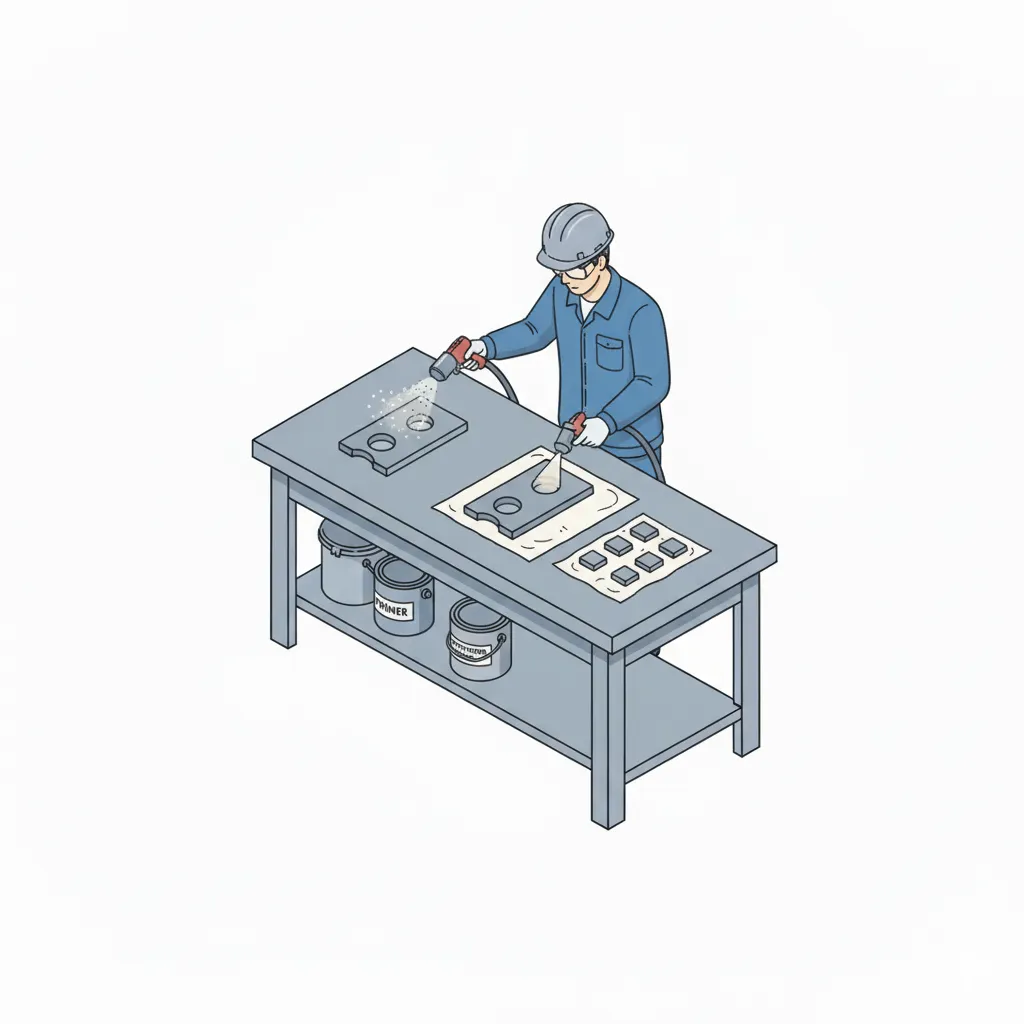 - Достигаем класс очистки Sa 2–Sa 3 под конкретную систему ЛКМ.